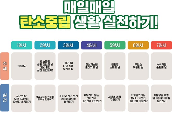 환경부에서는 4월 22일부터 4월 28일 제 14회 기후변화 주간 동안 매일 탄소중립 생활을 실천하고 생활 미션을 수행하면 선물을 받을 수 있는 캠페인이 진행되고 있습니다.