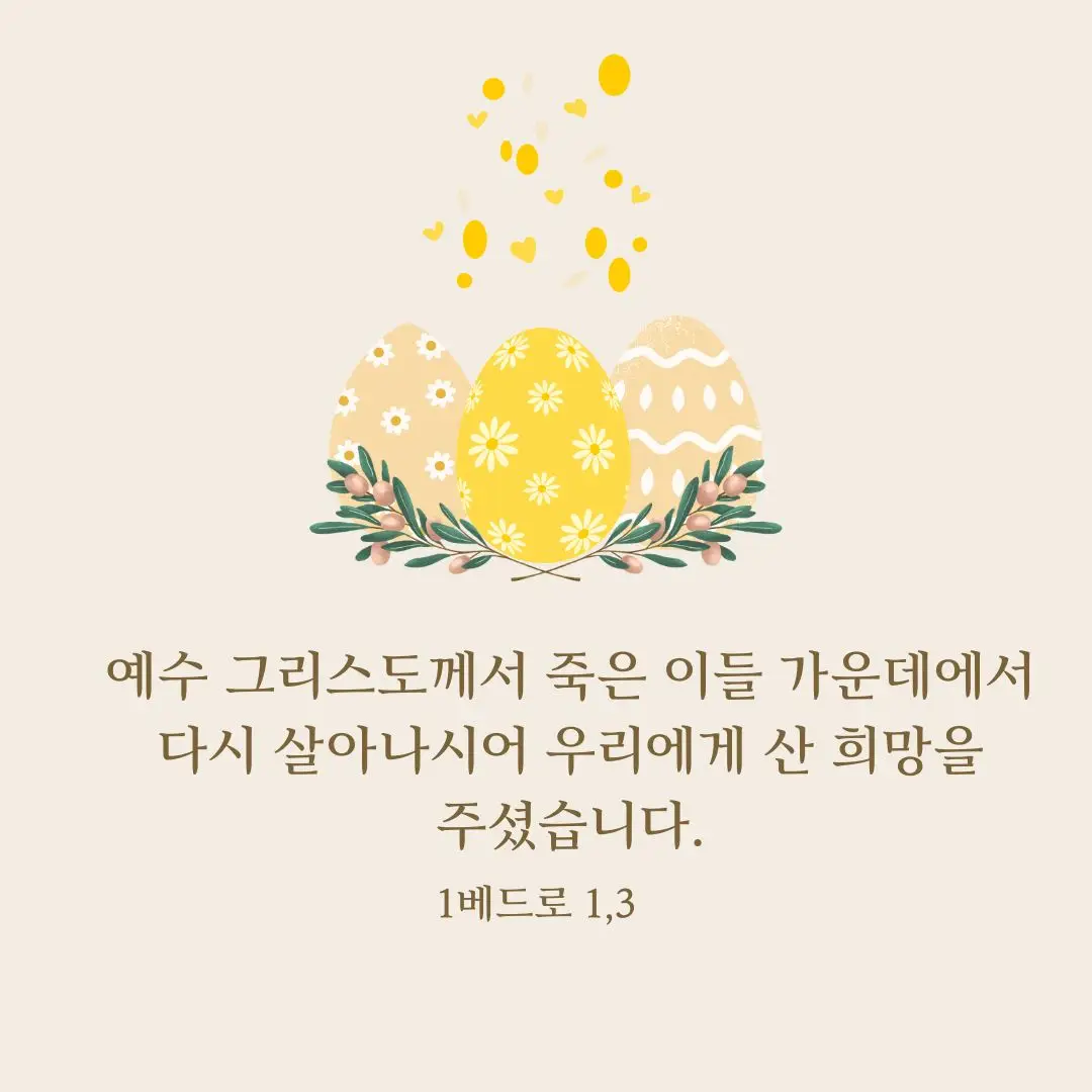 예수님의 부활처럼, 여러분의 마음에도 새로운 희망이 꽃피기를 바랍니다. 행복한 부활절 되세요!