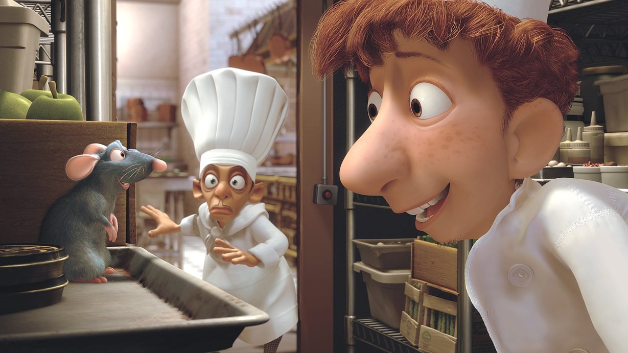 쥐답게 쓰레기나 먹고살라는 가족들의 핀잔이 있었지만, 레미는 포기하지 않고 주방으로 갑니다. 깜깜한 어둠이 내린 밤, 아무도 없는 주방에서 홀로 요리에 열중하는 재능 없는 수습생 링귀니에게 들키고 맙니다.