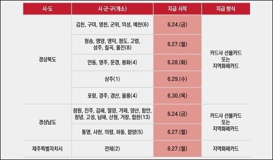 3. 지자체별 지급일정 및 지급방식