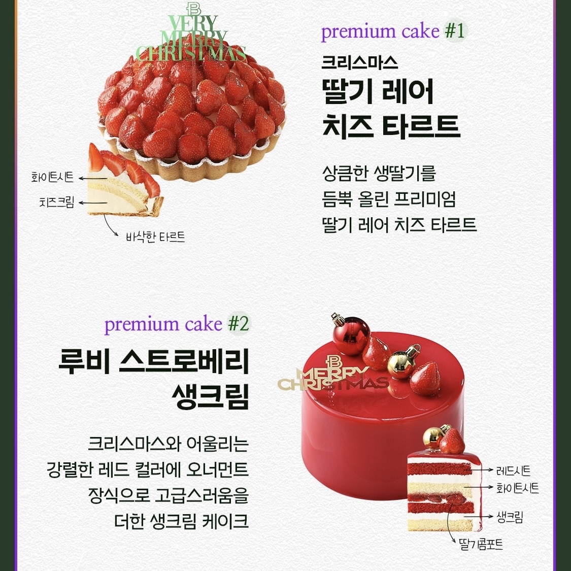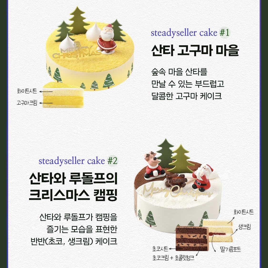 크리스마스하면 어릴 때 아버지 손에 꼭 들려있던 크리스마스 케이크가 떠오르는데요, 가장 무난하고 많이 선물하는건 케이크인 것 같습니다. 호텔을 비롯하여 유명 제과점부터 프렌차이즈 베이커리, 커피샵까지 다양한 크리스마스케이크가 판매되고 있는데, 케이크와 함께 크리스마스를 즐겁게 보내보세요!