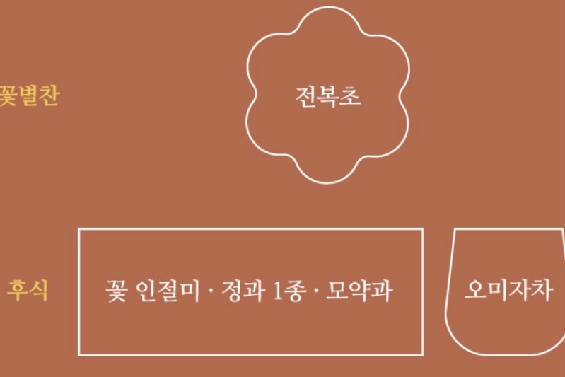 구성된 12가지 음식은 선조들의 음식 철학인 음양오행과 약과 음식은 그 근원이 같다는 약식동원의 의미를 담고 있습니다.
