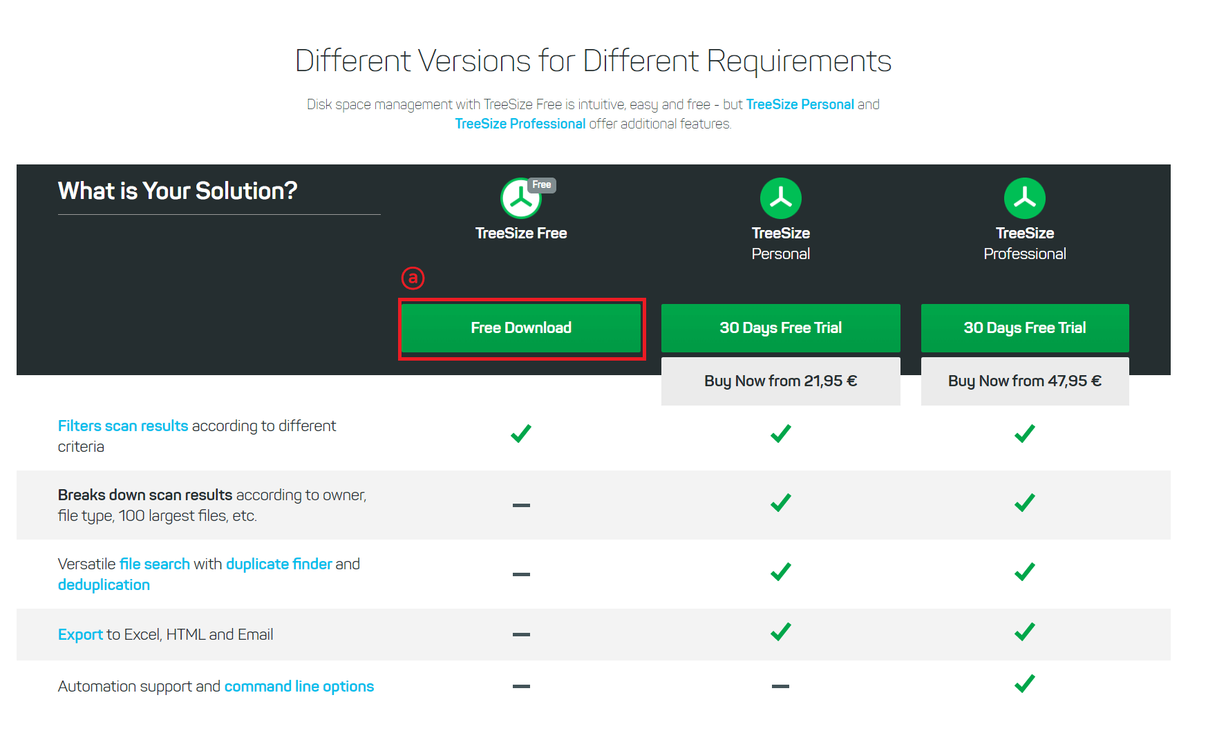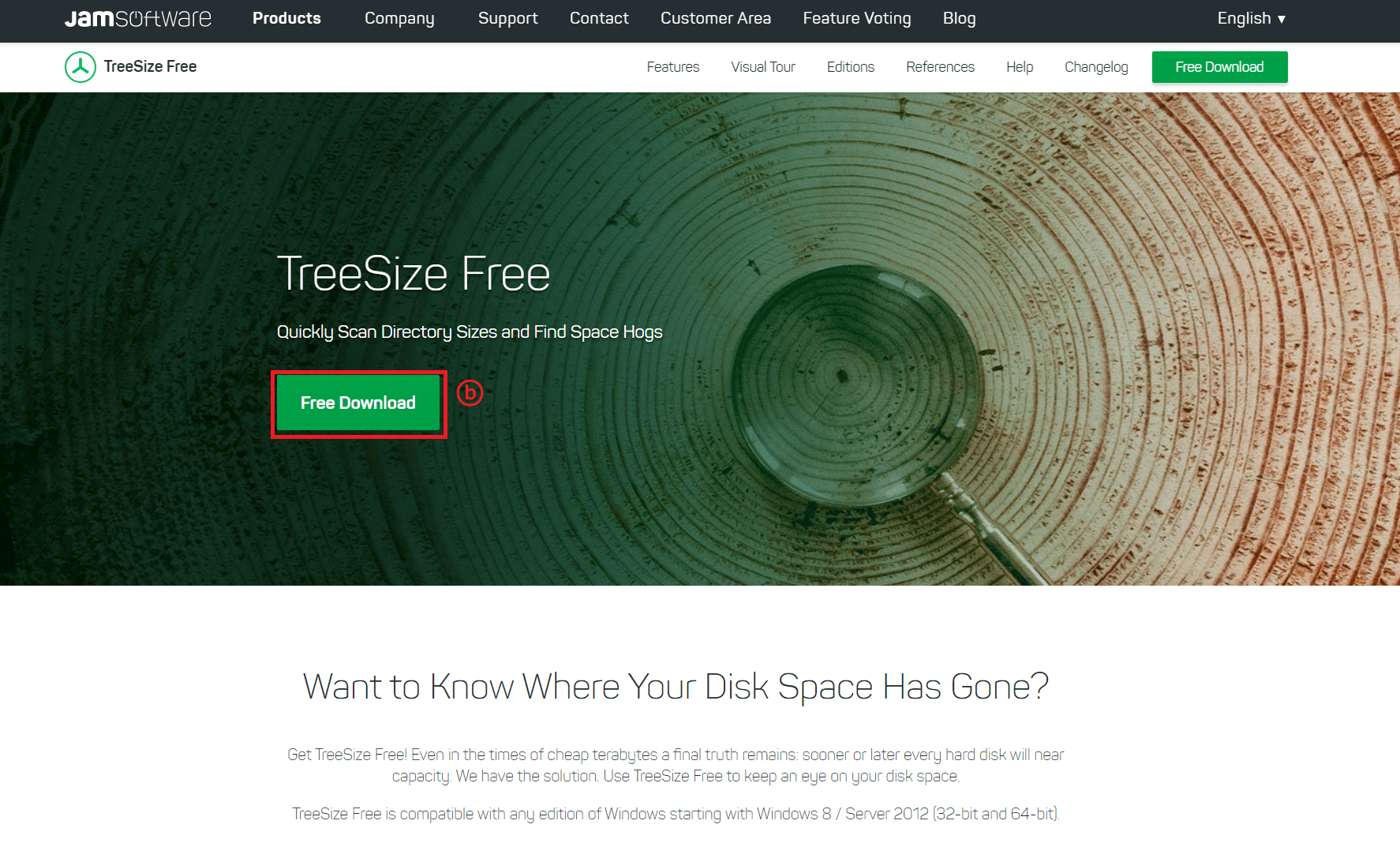 ⓑ [TreeSizeFreeSetup.exe] 선택 ▶ [Download] 클릭